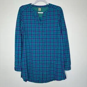 Duluth Flex Sidewinder Shirt Tunic Sz M UPF 30 Plaid Blue Outdoor Hiking