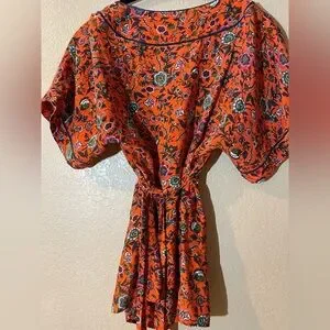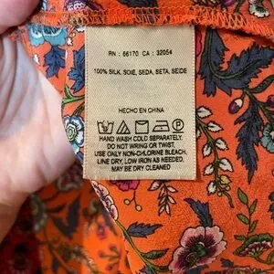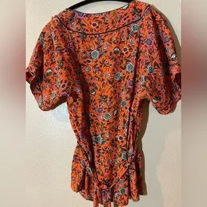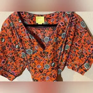 Anthropologie Maeve 100% Silk Floral Orange Blouse