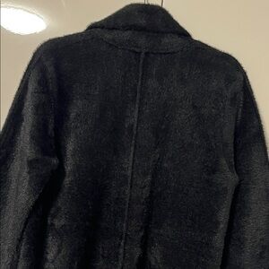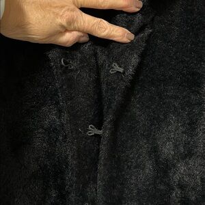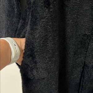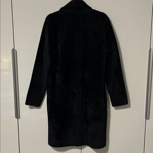 Elevate your wardrobe with this chic black silky faux fur coat. Perfect for adding a touch of sophistication to any outfit. A soft and silky faux fur constructed coat is perfect for a winter look. Wear it as a car coat on the weekend with your favourite pair of jeans, to the office with trousers and then drink after work. This coat is so versatile and easy to throw on. There is some stretch which makes it the comfiest elevated coat ever. Features hook closure along front and 2 side pockets. The fur on this coat is beautiful and looks expensive from its silky finish. New condition.