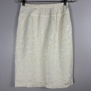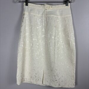 Strap top, straight pencil skirt, beautiful textured fabric with subtle raised embroidery classic ivory/cream tone (not stark white) Elegant, modest silhouette with a refined vintage feel Perfect for courthouse weddings, rehearsal dinners, second looks, or bridal showers One-of-a-kind thick well made with intricate beading no modern replicas like this