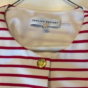 English Factory Red and White Striped Sleeveless Jacket with Gold Buttons