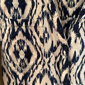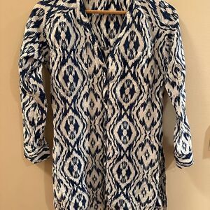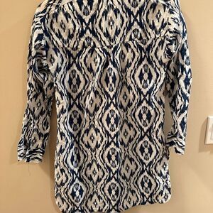 Blue and White Athleta Button Front Geometric Print Swimsuit Long Sleeve Coverup Top Style 75956