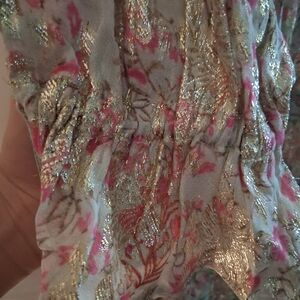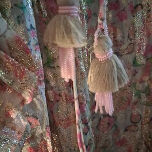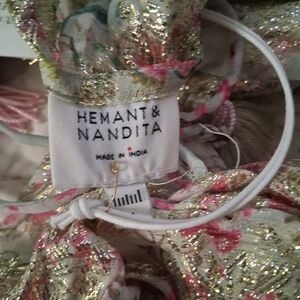 HEMANT & NANDITA Cream Floral Maxi Dress with Pink and Green Detail