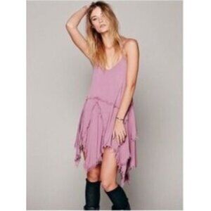 Free People Mauve Pink Tattered Up Asymmetrical Slip Dress