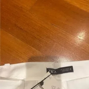 Elegant cream dress pants from Zara. Clean lines with a tailored silhouette. Subtle welt pocket detail. Smooth fabric for a polished look.