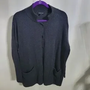 Eileen Fisher Org. Cotton & Cashmere Gray Button Cardigan Pocket Sweater, Size S