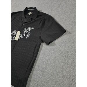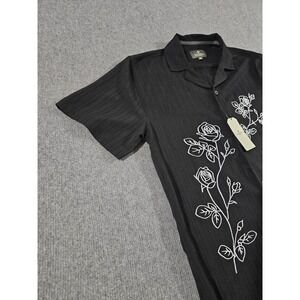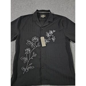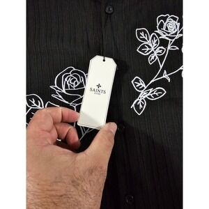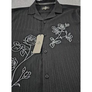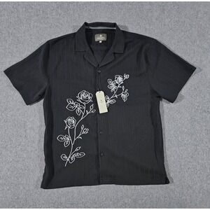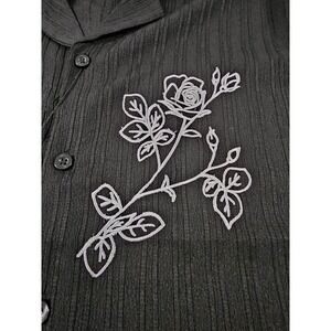 Saints Studio Mens Black Textured Rose Embroidered Button Down Shirt Size M