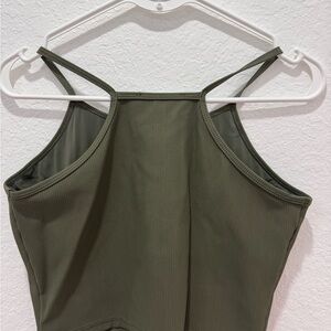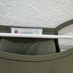 LASLULU olive ribbed crop tank top with a flattering square neckline. Soft, stretch fabric for all-day comfort. Easy to pair with high-waist bottoms for a casual, on-trend look.