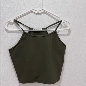 LASLULU Olive Ribbed Crop Tank Top