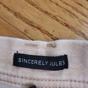 Step out in style with these elegant beigey tan wide-leg jeans. Perfect for a chic, casual look.