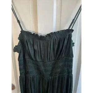 Free People Intimately Dark Green Slip Dress Sz M - Boho Lace Trim Babydoll Mini