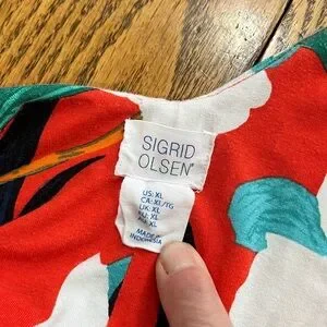Sigrid Olsen Orange Floral V-Neck Maxi Dress with White & Teal Blooms