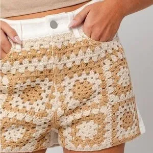 These 70s Style Crochet Denim Shorts are a stylish and unique addition to any wardrobe. Made with a granny square crochet front and inspired by the 70s, these shorts offer a nostalgic vibe while also providing a comfortable fit. Perfect for any fashion lover looking to make a statement.