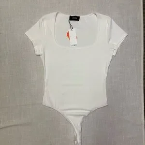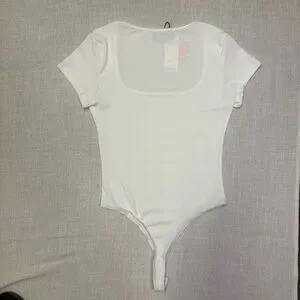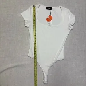 Cider Women’s XL White Thong Bodysuit NWT Ribbed Snap Crotch Summer Sexy