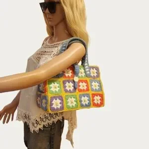 Bohemian VINTAGE Colorful CRAFTED Crochet Tote Bag