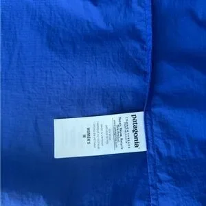 Vibrant blue Houdini jacket by Patagonia. Features a hood and sleek design. Ideal for windy days on trails. Excellent like new condition.