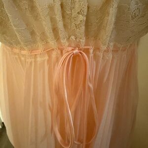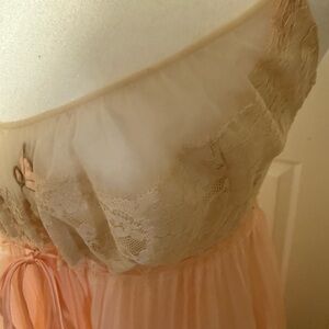 Elegant Peach Lace and Nylon Vintage Nightgown