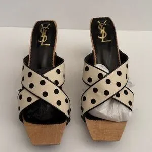 YSL Ivory & Black Lolita Dot Heeled Slides