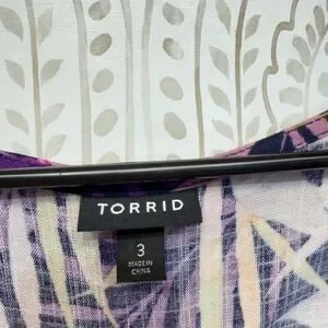 Torrid Babydoll Top Women 3 Multicolor Tropical Palm Leaf Tiered V-Neck Blouse