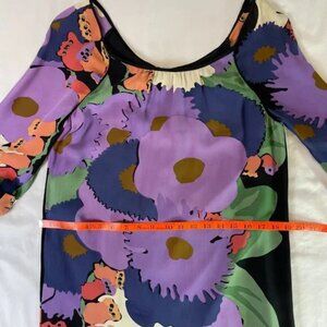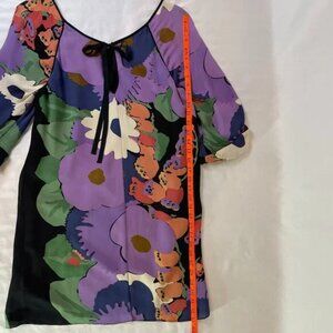 Tibi Silk Floral Tunic Mini Dress Lined 3/4 Sleeves Purple Multi Color Size 8