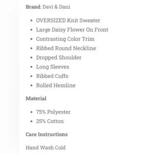 NWOT DAVI & DANI Oversized Textured Knit Daisy Sweater Womens Small