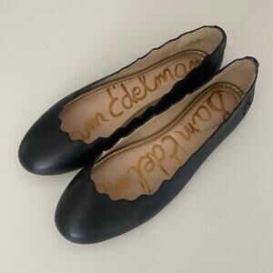 Sam Edelman Francis Ballet Flat Ballerina Black Round Toe Leather Scalloped 7.5