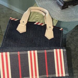 💯 Burberry Navy Tote with Red and Cream Accents Blue Label