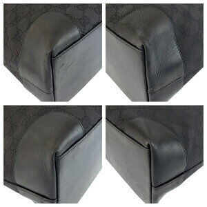 GUCCI black GG canvas leather tote bag shoulder Includes a Certificate of Authentication!