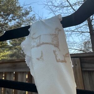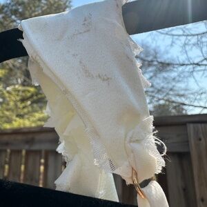 Note: The wooden hanger bled underneath the dress straps. This stain is not visible while wearing the dress. There’s a tiny speck on the side of the dress - it’s not noticeable however there’s a close up photo for your review.