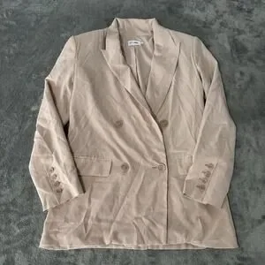 R Label Double Breasted 100% Silk Pink Blazer Size XS Womens $298 MSRP