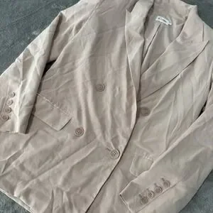 Elevate your wardrobe with this stunning R Label double-breasted blazer. Crafted from 100% silk, this pink overcoat is a perfect addition to any fashion-forward woman's collection. The blazer features a solid pattern, mid-length jacket/coat length, long sleeves, and a button closure.