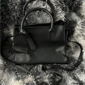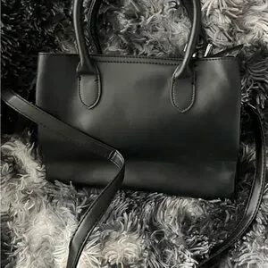 Used a few times not using. Non smoking. Stylish black satchel handbag with dual top handles and an adjustable shoulder strap. Sleek finish for a polished everyday look. Practical interior for daily essentials. Versatile black color complements any outfit.