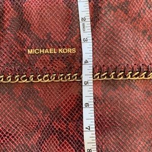 Gorgeous snakeskin clutch with gold chain detailing. Tiny mark under the flap as shown in picture.