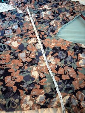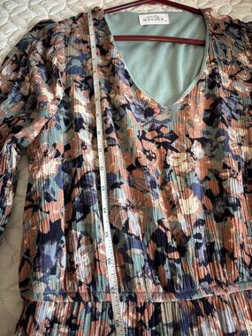 Chic long sleeve dress with beautiful dusty mauve, greens and blues palette floral pattern maxi dress. Last photo is the measurement from the waist down. There are 3 tiers from the waist and the lining goes down as far as the bottom of the 2nd tier. There are no pockets. Features a stylish V-neck. Ideal for versatile wear. Purchased new and worn gently. This beautiful dress comes from a smoke-free home. EUC.