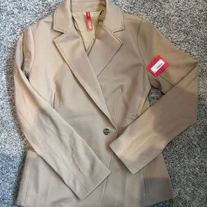 Tan Blazer, thick, stretchy material.