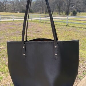Coach Black Leather Tote with Red & Blue Pepsi-Cola Graphic