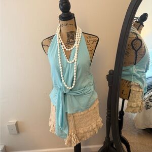 NWT Zara Linen Blend Wrap Halter Top - Turquoise Blue