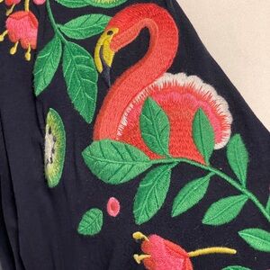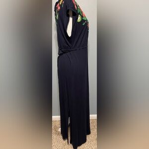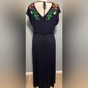 Boden Marcia Blue Embroidered Floral Maxi Dress Flamingo Boho Tropical Size 12