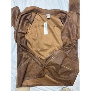 Chico’s Faux Suede Brown Zip-Front Jacket w/ Lace-Up Sleeve Detail SZ 2(Large)