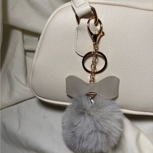 Gray Fluffy Rhinestone Bow Pom Pom Keychain Bag Charm