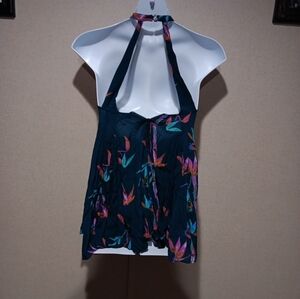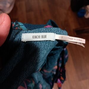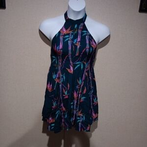 Chic dress with a teal base and floral accents. Ideal for casual outings.