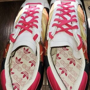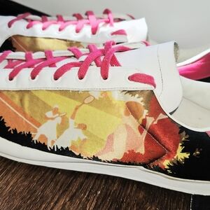 adidas White Sneakers with Pink Laces and Sunset Graphic