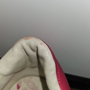 Low-top vintage Rod Laver 2005 adidas sneakers with white leather upper. Bright pink laces and collar trim. Sunset-themed side graphic in warm tones. Clean, casual look for everyday wear.