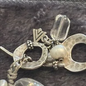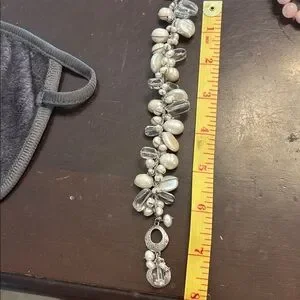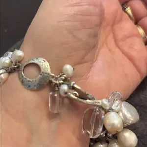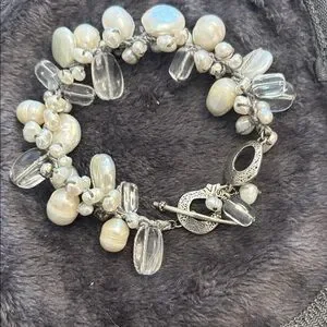 Silpada Elegant 925 Silver toggle and pearl & clear glass beads Bracelet