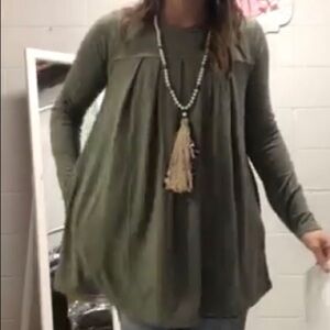 IT HAS POCKETS!! Small grayish brown top. Never worn but no tags. Purchased from a little boutique. Wonderful soft material and it has pockets!! It’s not green!