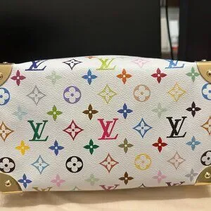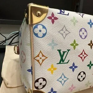 The Speedy Bandoulière 25 handbag makes a spirited statement in the Louis Vuitton x Murakami collection's vibrant version of the iconic Monogram motif, which is refreshed with the Japanese artist’s signature pop-colored palette. This classic design is detailed with two Toron top handles and a removable strap in natural cowhide leather, as well as a playful bow-shaped LV x TM keybell. A golden padlock and corner details nod to the House’s emblematic travel trunks.