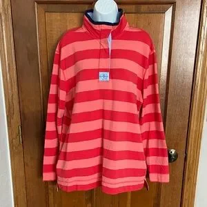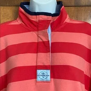 Southern Tide Striped Skiptide Pullover Fire Red Elbow Pads Rugby Size Large