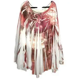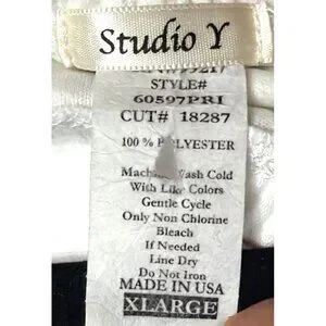 Abstract skirt with a slashed design. Flowy polyester material. Machine washable. Made in the USA.