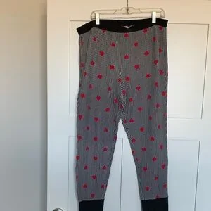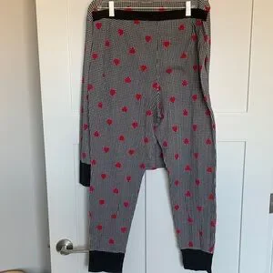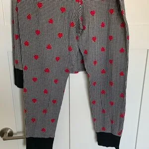 Victoria's Secret Black & White Houndstooth Pajama Top bottom Red Heart Print