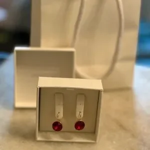 Genuine Gold-tone Swarovski Mini Bella drop earrings. Pair of earrings features a faceted deep ruby red crystal. NIB gift ready. Purchased myself at the Swarovski store. Perfect for holiday or for special occasions.